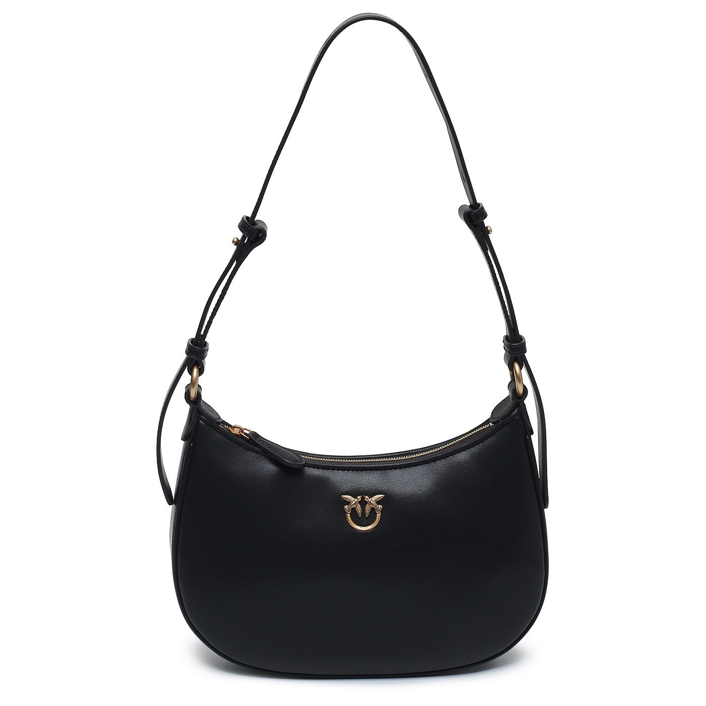 Кожаная сумка Pinko Half moon 102790-A0F1/Z99Q_black - 2000558612548 черный натуральная кожа 26 x 18 x 7 Цена 28448 руб. купить в интернет-магазине PanChemodan.ru в Барнауле